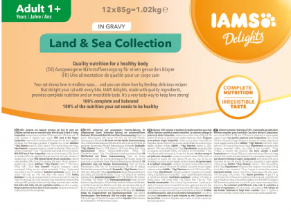 IAMS Nassfutter für ausgewachsene Katzen mit unterschiedlichen Fleisch- und Fischaromen – Land- und Meereskollektion in Sauce (Adult 1+)