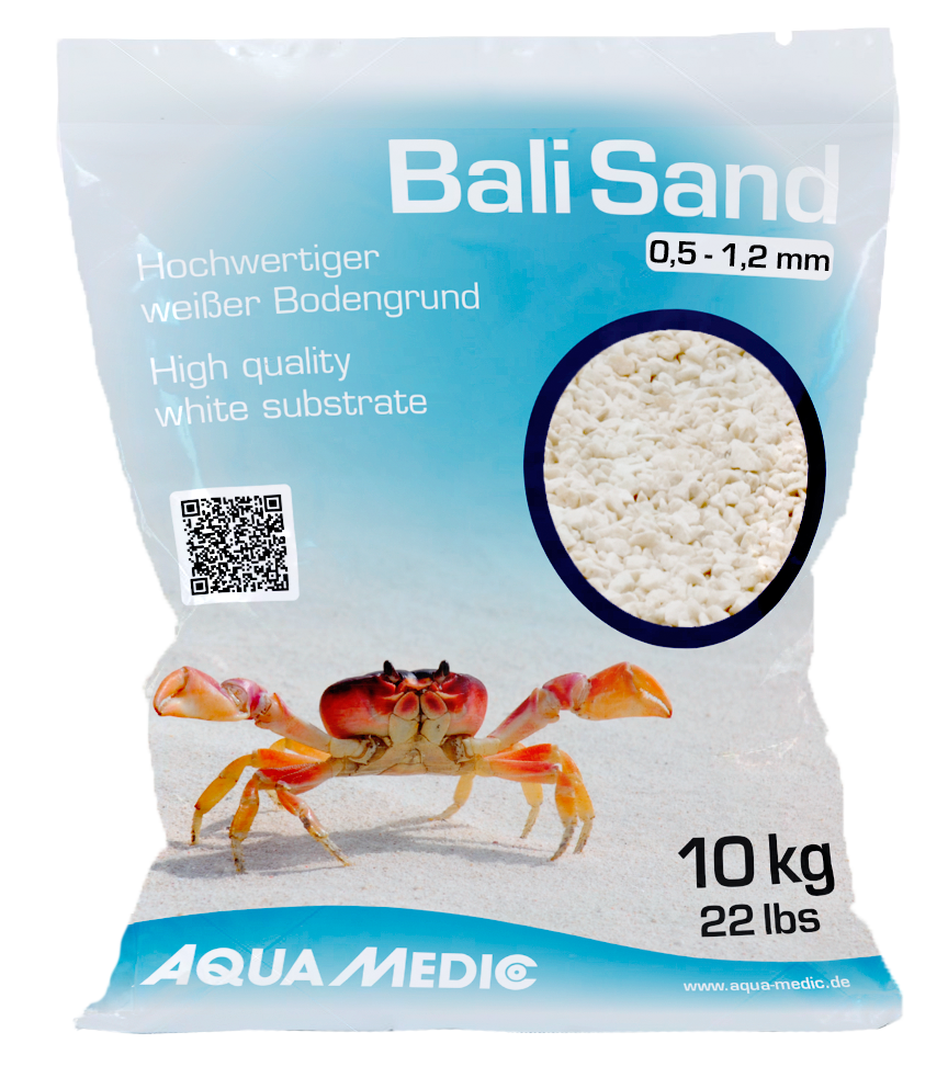 Bali Sand ist ein sehr reines Kalkgestein, das zu etwa 98% aus Calciumcarbonat sowie einigen Zeolith ähnlichen Mineralien besteht. Aufgrund seiner Beschaffenheit und des sehr weißen Erscheinungsbildes eignet er sich hervorragend für Meerwasseraquarien. Für Wirbellose wie Anemonen, Zylinderrosen, Röhrenwürmer und auch Lippfische ist Bali Sand gut geeignet, da sich die Tiere mit Leichtigkeit eingraben können. Ebenso wird dieser Bodengrund von Grundeln gut durchgekaut. Bali Sand entspricht durch seine Eigenschaften der natürlichen Umgebung eines Korallenriffes und legt dadurch den Grundstein für ein gut funktionierendes Aquarium. Bali Sand ist ebenso wie Korallenbruch ein fossiles Naturmaterial, welches allerdings nicht durch die Entnahme aus den Meeren gewonnen wird. Dieser Bodengrund ist eine optimale Alternative mit geeigneter biologischer Wirkung für alle Aquarienbewohner und die Natur wird geschont.