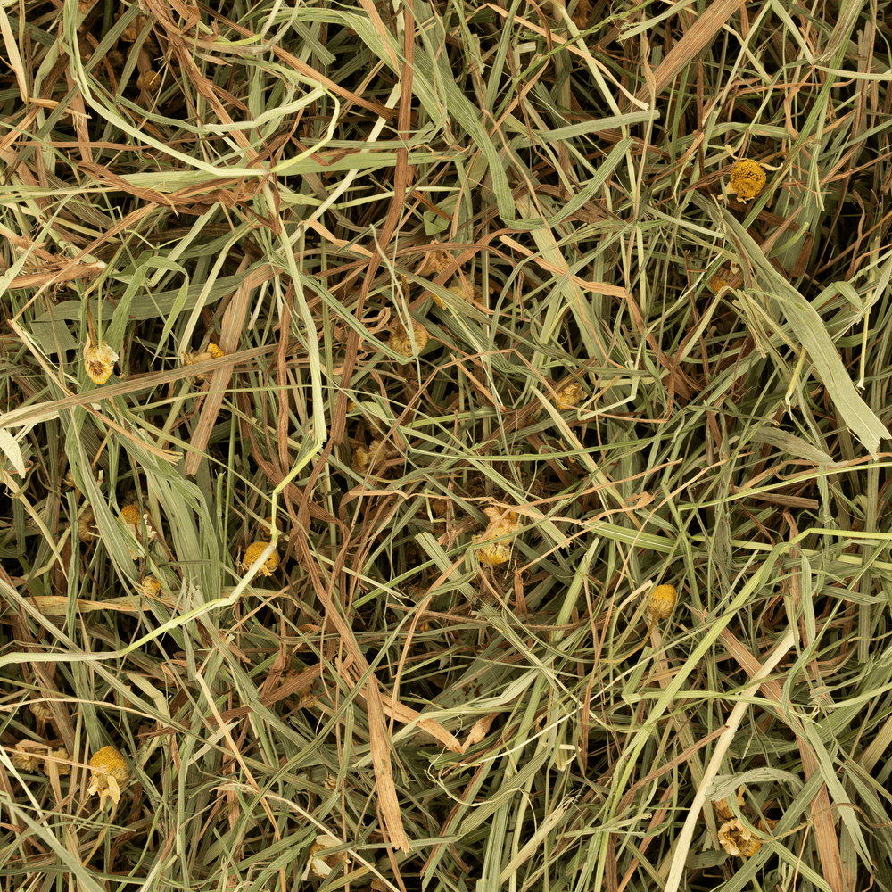 Zusammensetzung: Kräuterheu, getrocknete Kamille (2,5%), getrocknete Minze (2,5%)