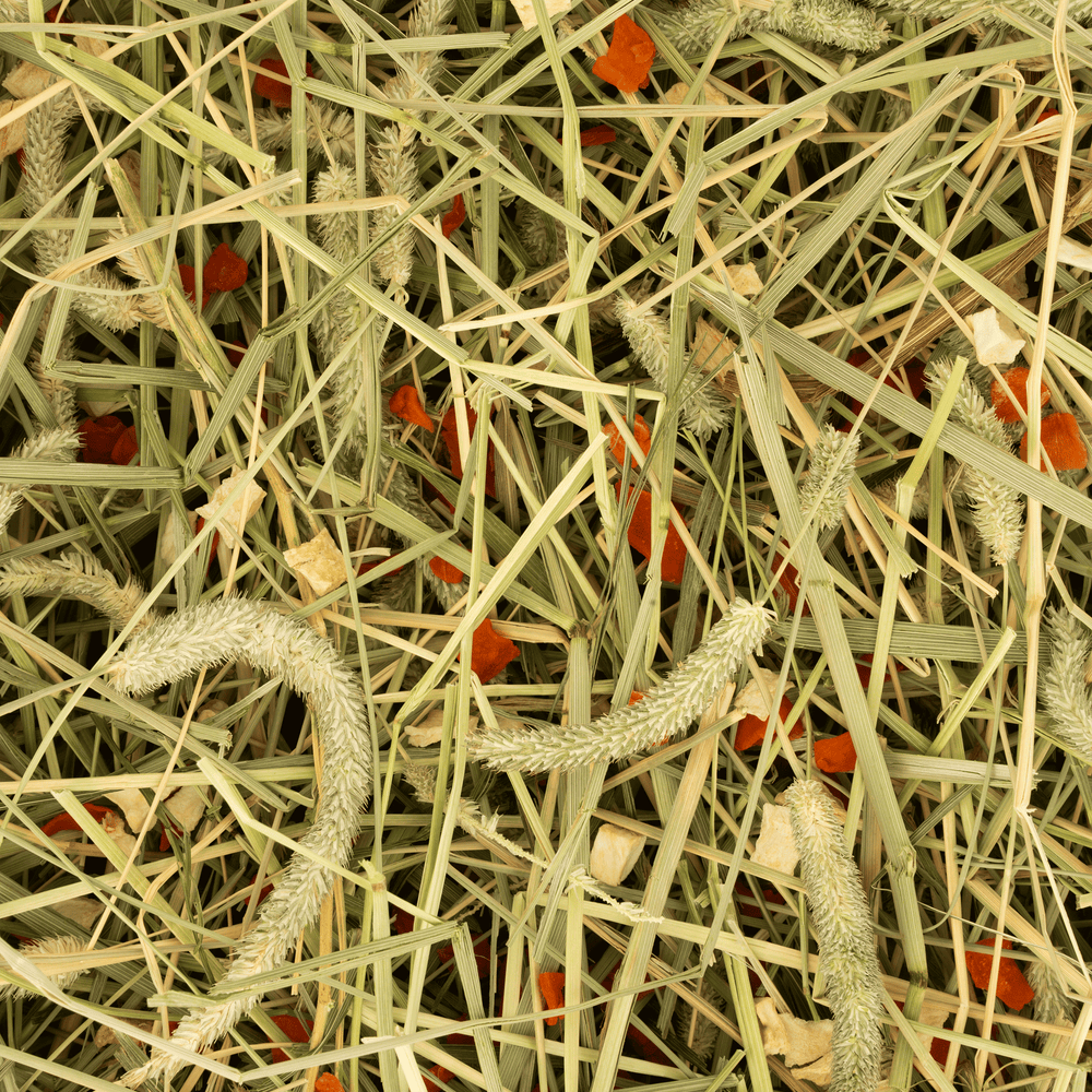 Zusammensetzung Timothy-Heu, getrocknete Karotte (2,5%), getrocknete Pastinake (2,5%)
