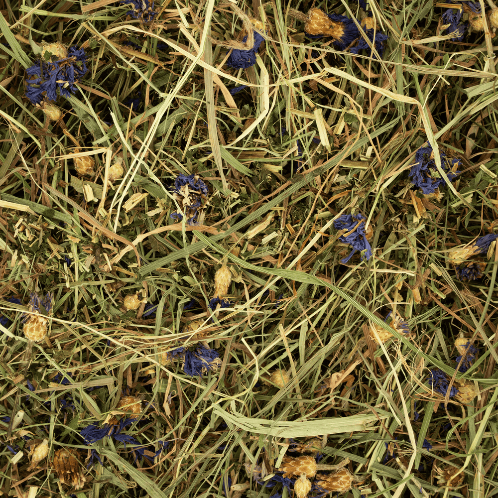 Zusammensetzung Kräutherheu, getrocknete Kornblume (2,5%), getrocknete Brennnessel (2,5%)