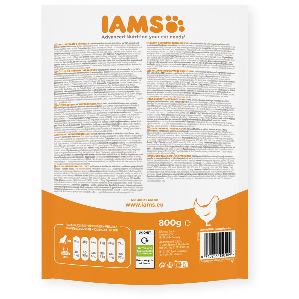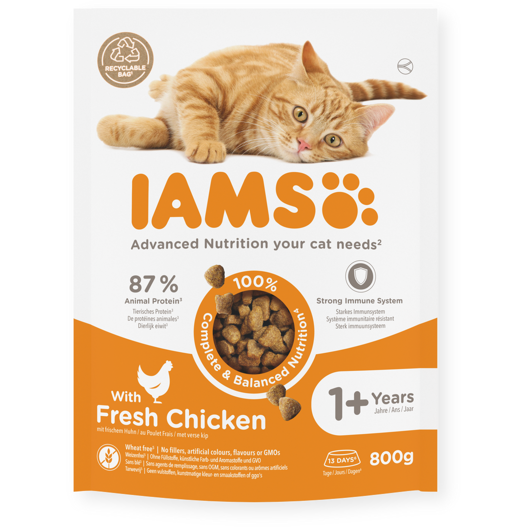 IAMS für Vitality Trockenfutter mit frischem Huhn für ausgewachsene Katzen (Adult1+) in 3 Größen